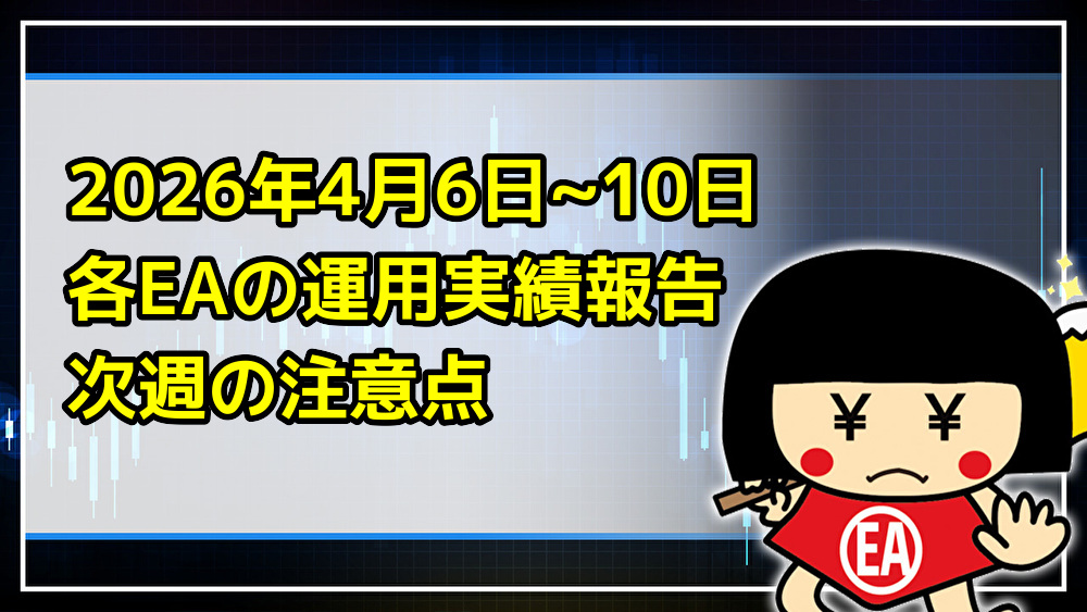 このページでは、錬☆金太郎が無料配布をしているEAの、2026年4月6日~10日の稼働実績をご報告致します。EA利用の申し込み、個別のご質問やご相談はLINEへお願い致します。 2026年4月13日~17日週で注意したいこと 13日週ですが、先週までのような「とにかく... -