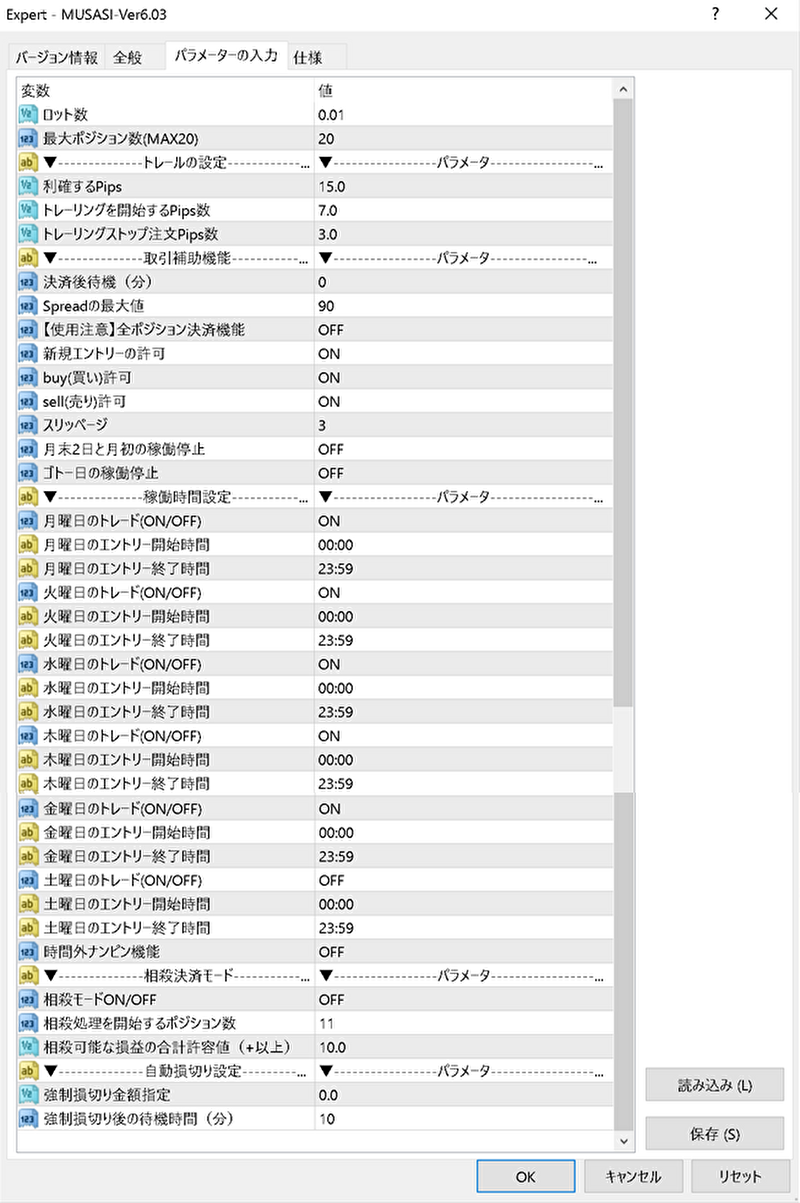※パラメーター設定:時間外ナンピンOFF
