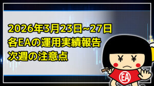 錬★金太郎このページでは、錬★金太郎が無料配布をしているEAの、2024年1月22~26日の稼働実績をご報告致します。個別のご質問やご相談は直通LINEへお願い致します。