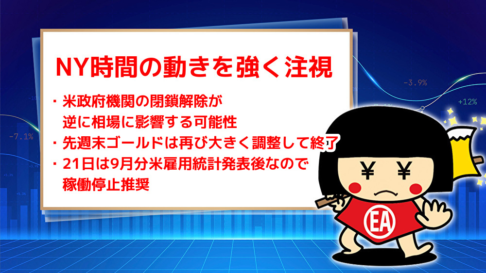 延期されていた9月分の発表で、米経済の鈍化懸念などから非常に注目されています!発表後の21日は稼働停止推奨です。