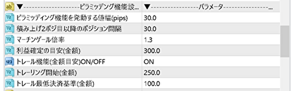 この「ピラミッディング機能設定」は、全ての項目が連動しているので1項目として解説します!