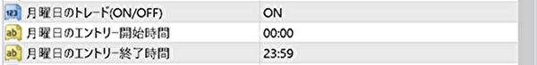 注意事項として、終了時刻は設定時間の59秒までエントリーをします。なので、例えばMT4時間の18時ピッタリに止めたい場合は、その前の17時59分で設定をしてください。