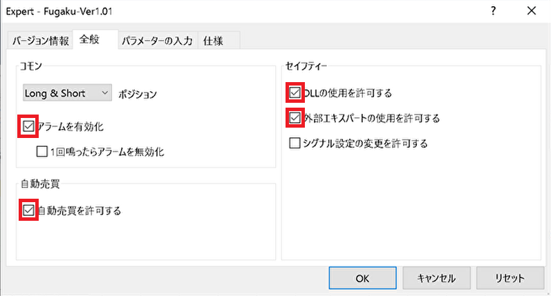 この設定がしっかり出来ていないとEAが動きません!EAが動かないという問い合わせの中で、この設定ミスが1番多い箇所なので、しっかり見直しをお願いします。