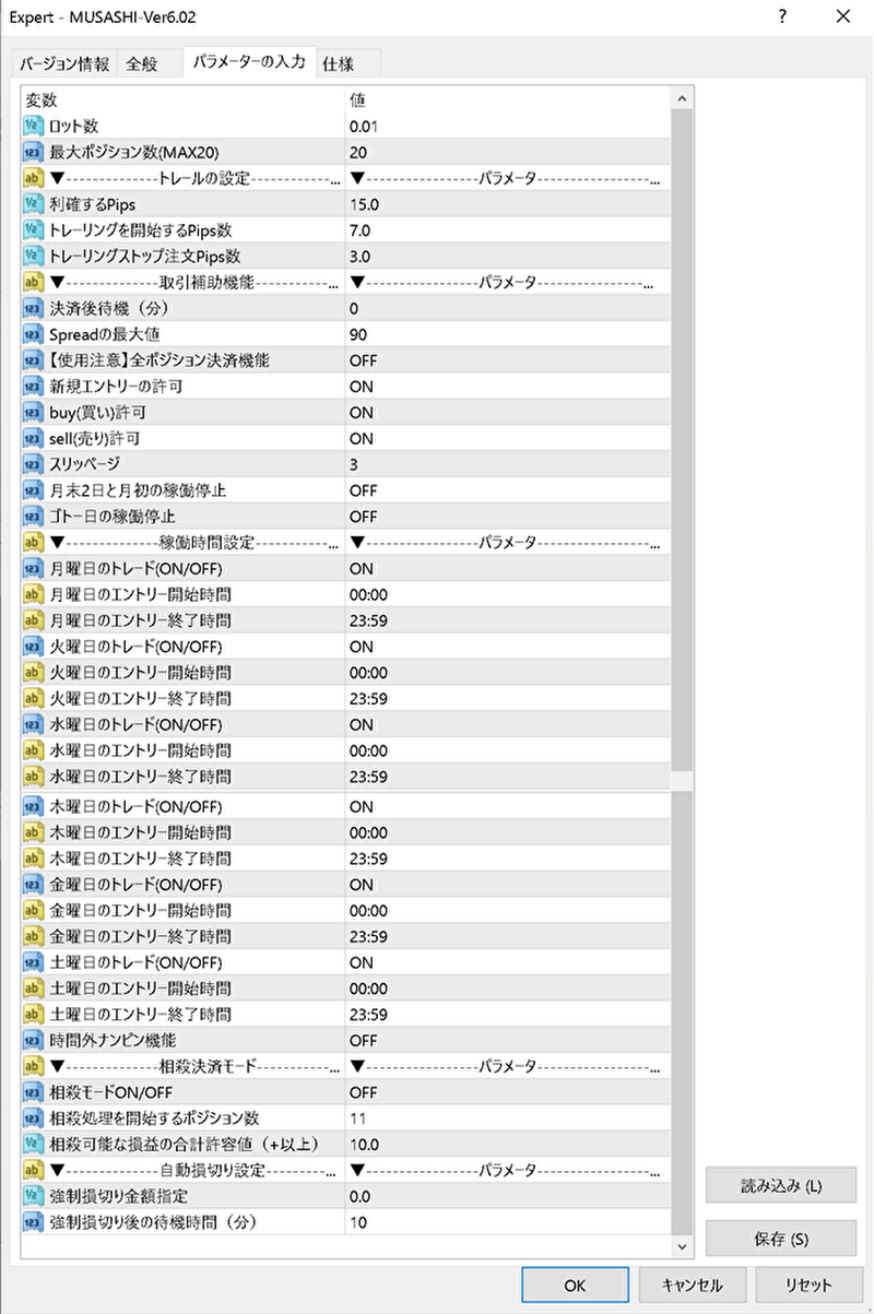 バランス型ゴールドEA・武蔵(ムサシ)は、片側10ポジ目からは高耐久エントリーロジックとなっています。